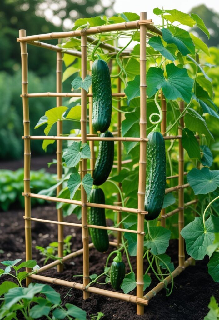 For a detailed guide on making a bamboo trellis, see DIY Guide to Building a Bamboo Trellis for Cucumber Plants.