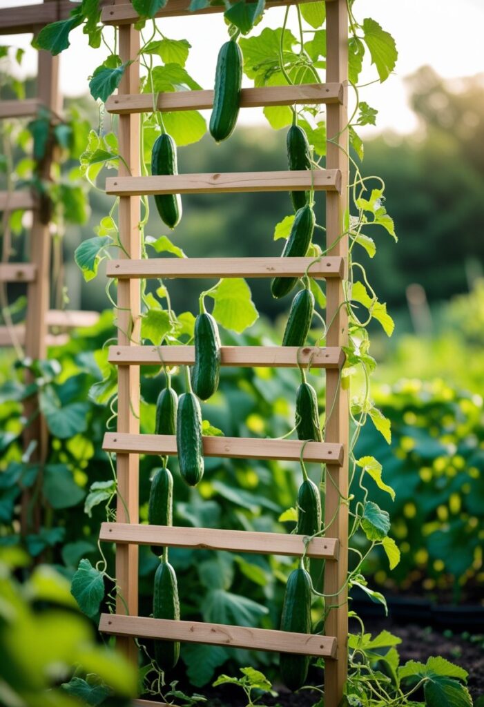 For more ideas on ladder-style trellises and other options, see 25 Cucumber Trellis Ideas for a Productive Garden.