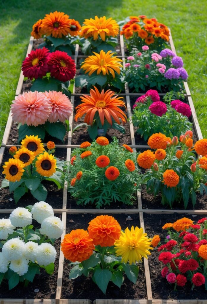 A 4×4-foot raised bed can produce many flowers. Plant tall sunflowers or snapdragons at the center. Surround them with mid-height dahlias and zinnias. Use the bed edges for low fillers like baby’s breath. This layout maximizes flower variety in a small space.