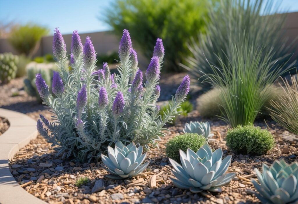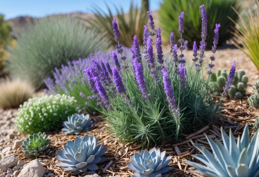 By mixing textures, the garden stays interesting through different seasons. It lets drought-tolerant plants show off their unique forms and colors more clearly.