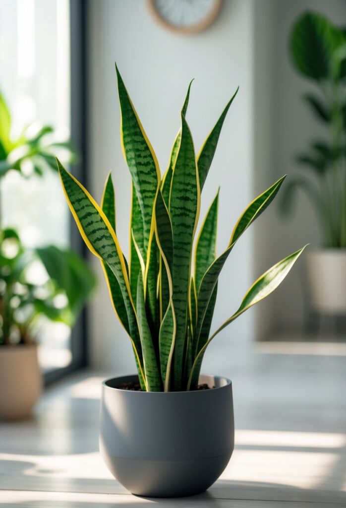 The snake plant is known for its tough, upright leaves that look like swords. It can grow in low light and needs little water, making it ideal for beginners.