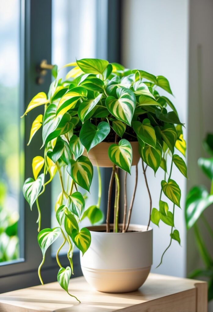Pothos is a popular houseplant known for its heart-shaped leaves and trailing vines. It adapts well to low light and requires minimal care, making it ideal for beginners.