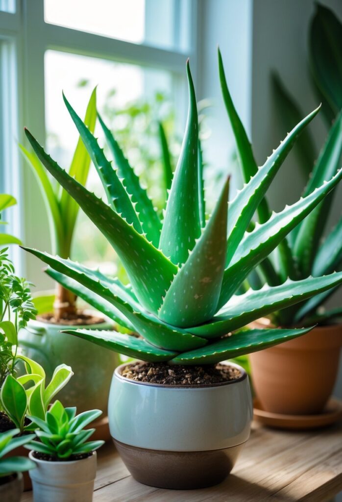 Aloe vera is a hardy succulent that grows well indoors with minimal care. It needs bright, indirect light and well-draining soil to stay healthy.