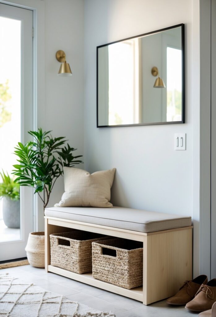 3) Entryway Bench with Hidden Storage Basket