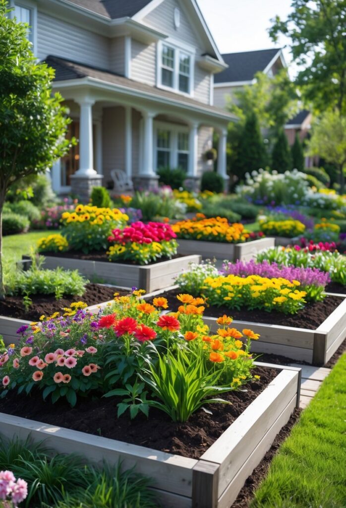 Raised beds with annual flowers can improve curb appeal without a lot of extra work. They offer a simple way to add color and style to the front yard. More inspiration for raised garden beds and seasonal flowers can be found at 15 Front Yard Flower Bed Ideas: Revamp Your Landscape.