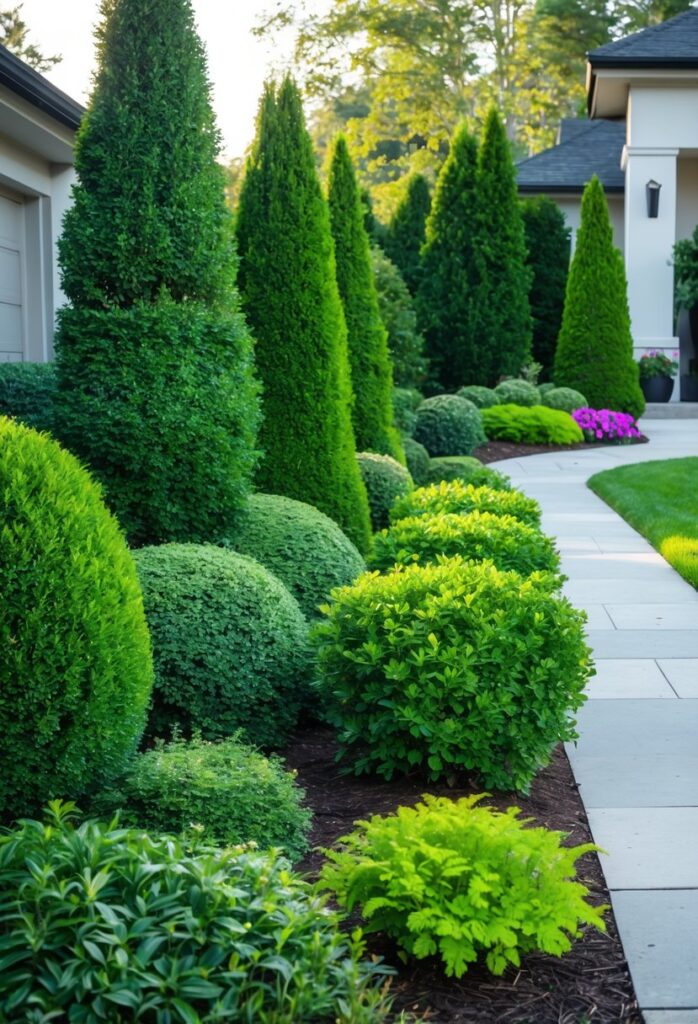 Choosing the right evergreen shrubs depends on the yard’s size and design goals. Mixing different types can balance height and texture. For ideas on selecting and using evergreen shrubs in landscaping, see front yard evergreen shrub suggestions at leafyplace.com.