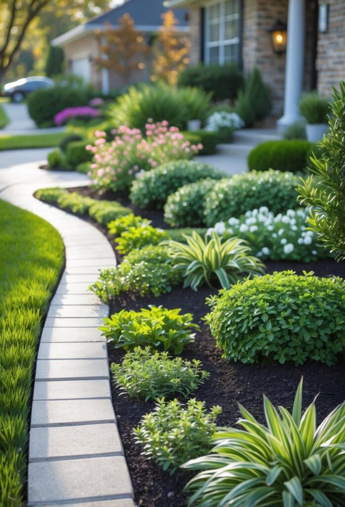 The goal is a clean, inviting look that complements the house’s architectural style. This helps the home stand out positively in the neighborhood. More on creating a focal point and visual axis can be found in front yard landscaping guides.