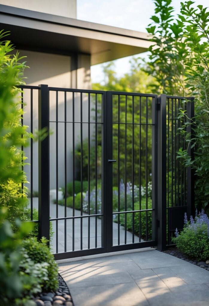 These gates provide secure access while keeping a refined appearance. They are often built with durable materials that require little maintenance. A modern minimalist metal gate adds a quiet elegance that fits many outdoor spaces.
