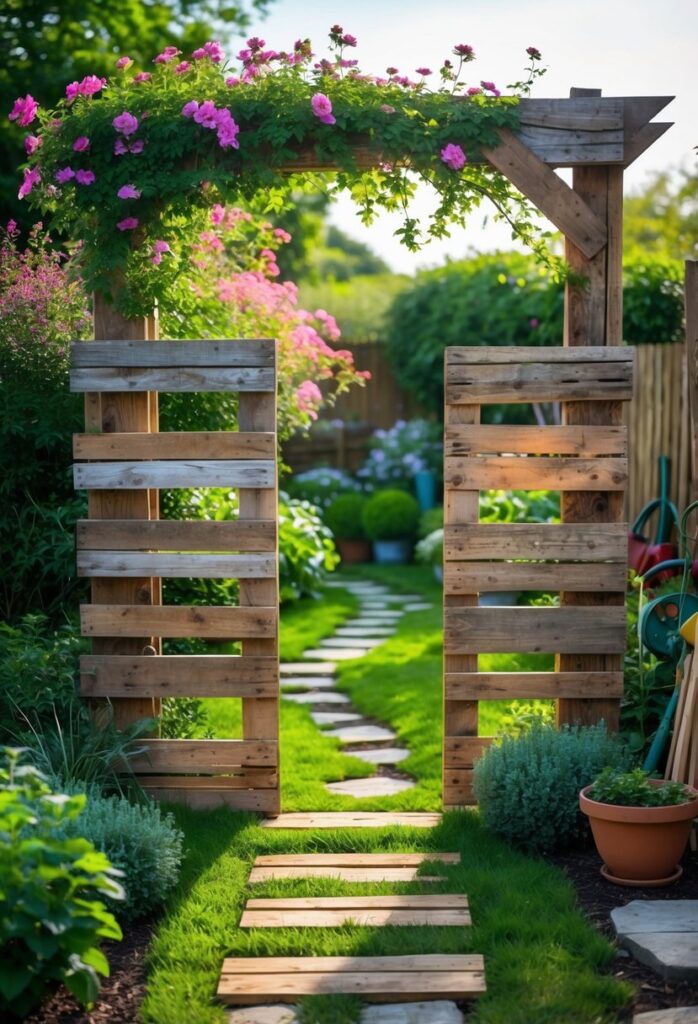 A reclaimed wood pallet gate is a practical and eco-friendly option for a garden entrance. It uses old pallet wood that can be found easily, making it a cost-effective choice. The wood often has a rustic look that fits well in many garden styles.