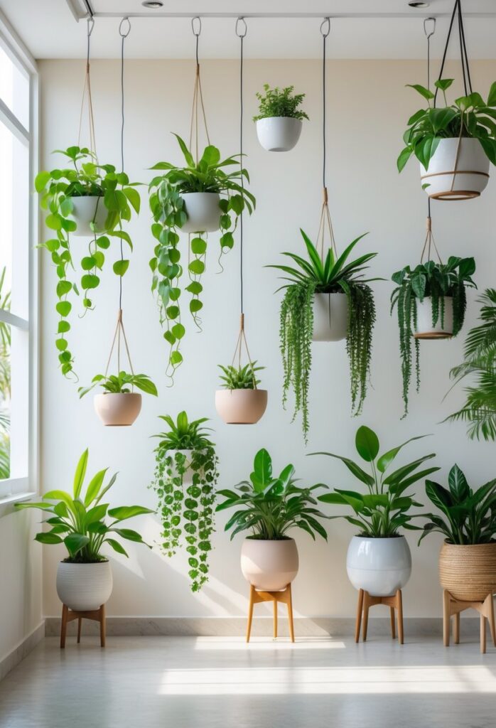Choosing the right spot and height for hanging plants changes how they look and feel in a room. Pairing plants with walls and other décor can also make a space feel more balanced and lively.