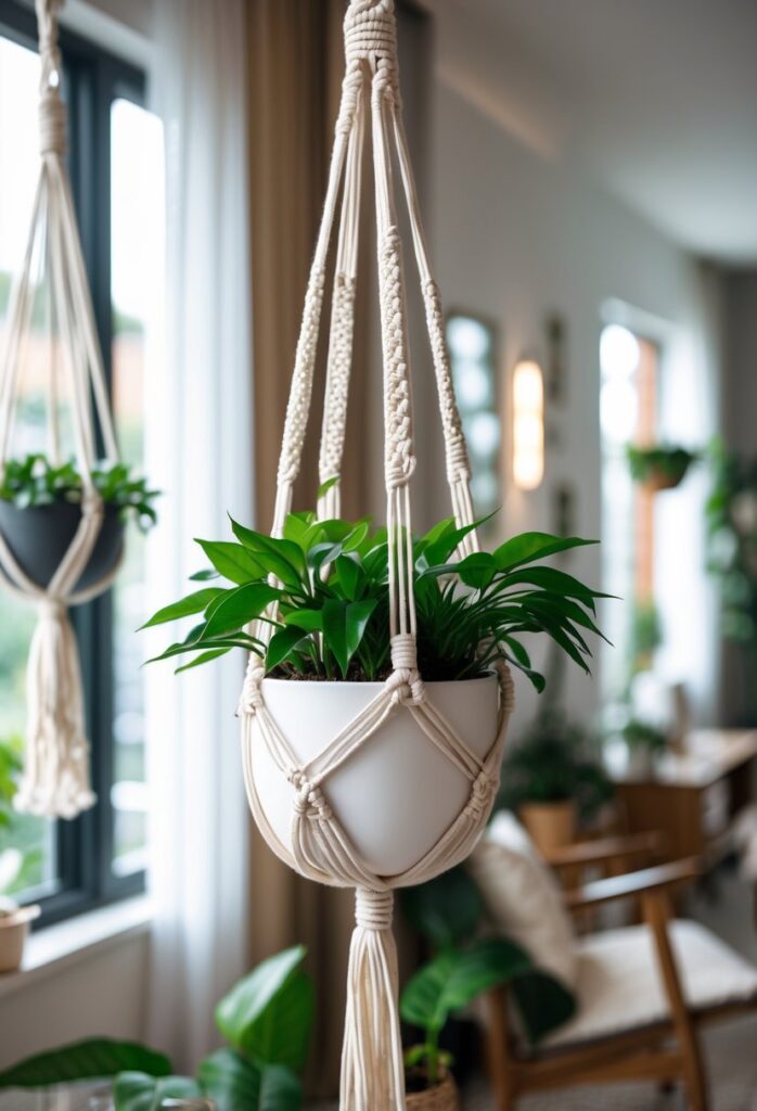 These planters are easy to make or buy and come in many designs. Some patterns use simple knots, making them perfect for beginners.