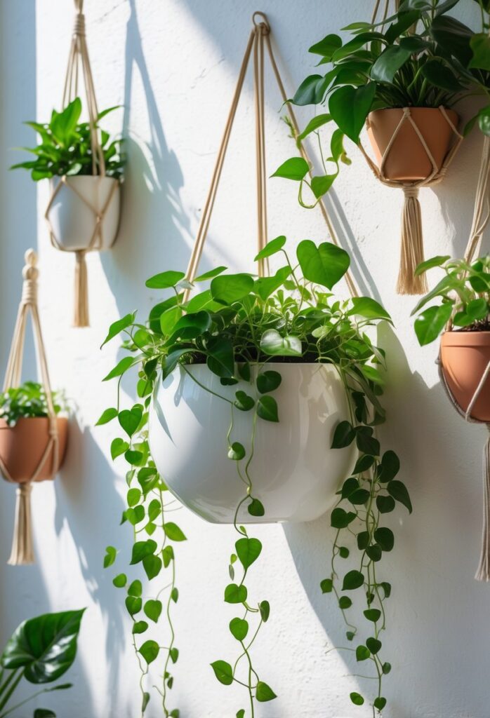Plants that tolerate low light and indirect sun work best in shade. Ferns, pothos, and some trailing ivy varieties adapt well to these conditions. Using macrame hanging planters helps save space while adding a decorative touch without stressing the plants.