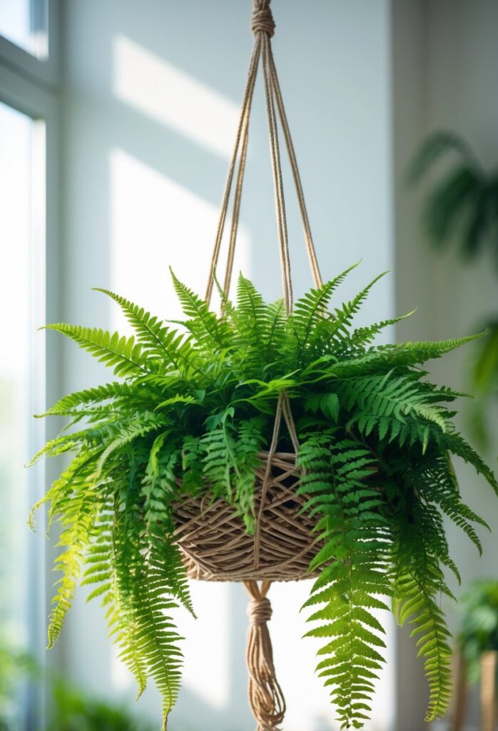 Ferns are a classic choice for hanging baskets. Their long, arching fronds add a soft, natural look to any space. They thrive well in shady or filtered-light areas, making them ideal for porches or indoor spots with indirect sunlight.