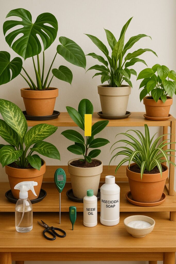 Healthy indoor plants need attention to avoid pests, diseases, and damage. Identifying issues early and applying the right treatments helps plants stay strong. Adjusting care routines based on symptoms like yellowing leaves or sticky residue can prevent further harm.