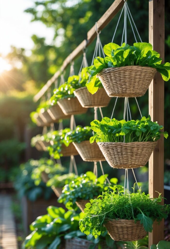 Hanging baskets are a smart way to grow salad greens in small spaces. They use vertical space, freeing up room on the ground or counters. This method is ideal for balconies, patios, or small yards.