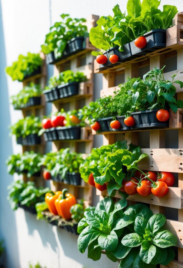 Using pallets for vertical vegetable gardening is a practical way to grow fresh produce in tight areas. More ideas for making vertical pallet gardens can be found at 15 DIY Pallet Garden Ideas for Growing Vegetables in Small Spaces.