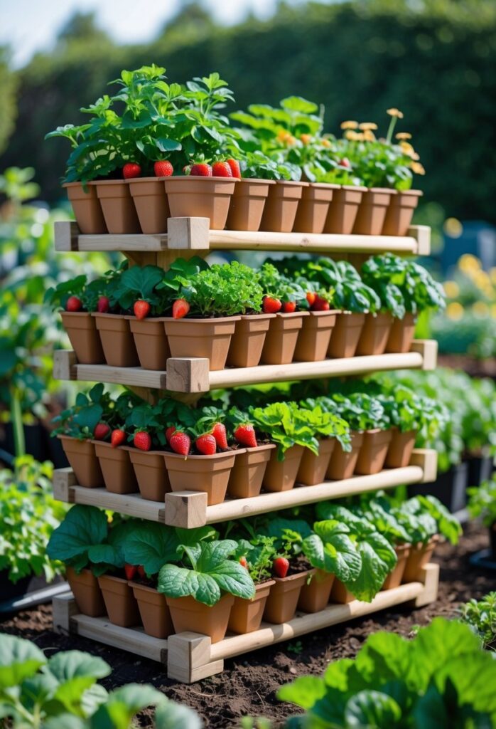 Stacked planters save ground space and improve airflow around plants, reducing pest issues. They also make harvesting easier since the berries are at different heights. This type of planter suits gardeners who want an organized and compact way to grow strawberries vertically.