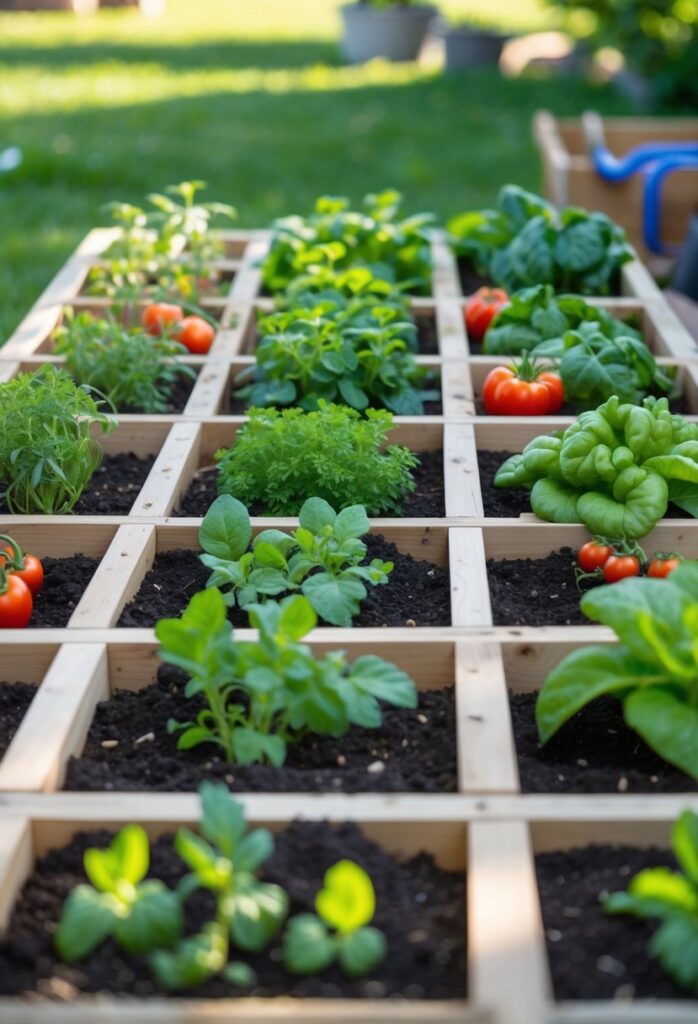 Square-foot gardening, which divides a small space into grid sections, also helps organize plants and maximize yields.