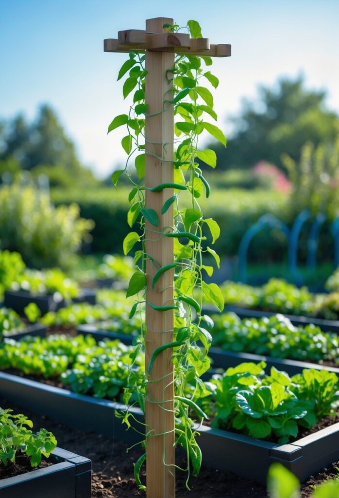 Vertical growing benefits the whole garden by maximizing space and improving plant health. This technique is effective for pole beans and other climbing vegetables. More detailed ideas can be found in the article on 15 proven trellis ideas for climbing beans.