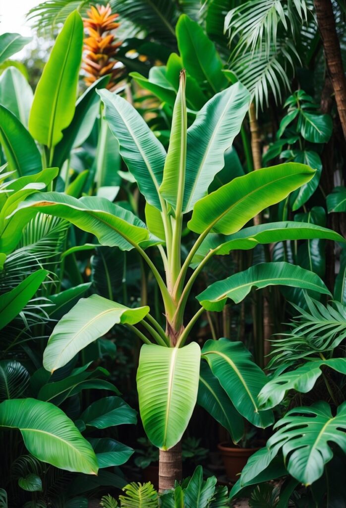 The banana plant, or Musa, is a fast-growing tropical herb with large, paddle-shaped leaves. It can grow both indoors and outdoors, adding a lush, tropical feel to any space. Banana plants are not true trees, but their size and appearance make them look like one.