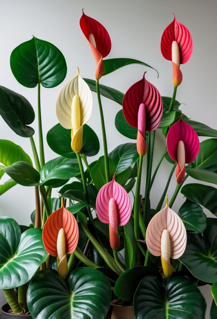 They are also known as flamingo flowers, named for their bright, spade-shaped blooms. Their tropical look makes them a favorite among plant enthusiasts who want a bold indoor plant.