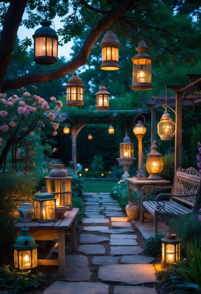 Antique lanterns bring a gentle, warm light to any garden. They create a calming atmosphere, perfect for relaxing evenings outside. Hanging lanterns from tree branches or placing them on tables adds charm and function.