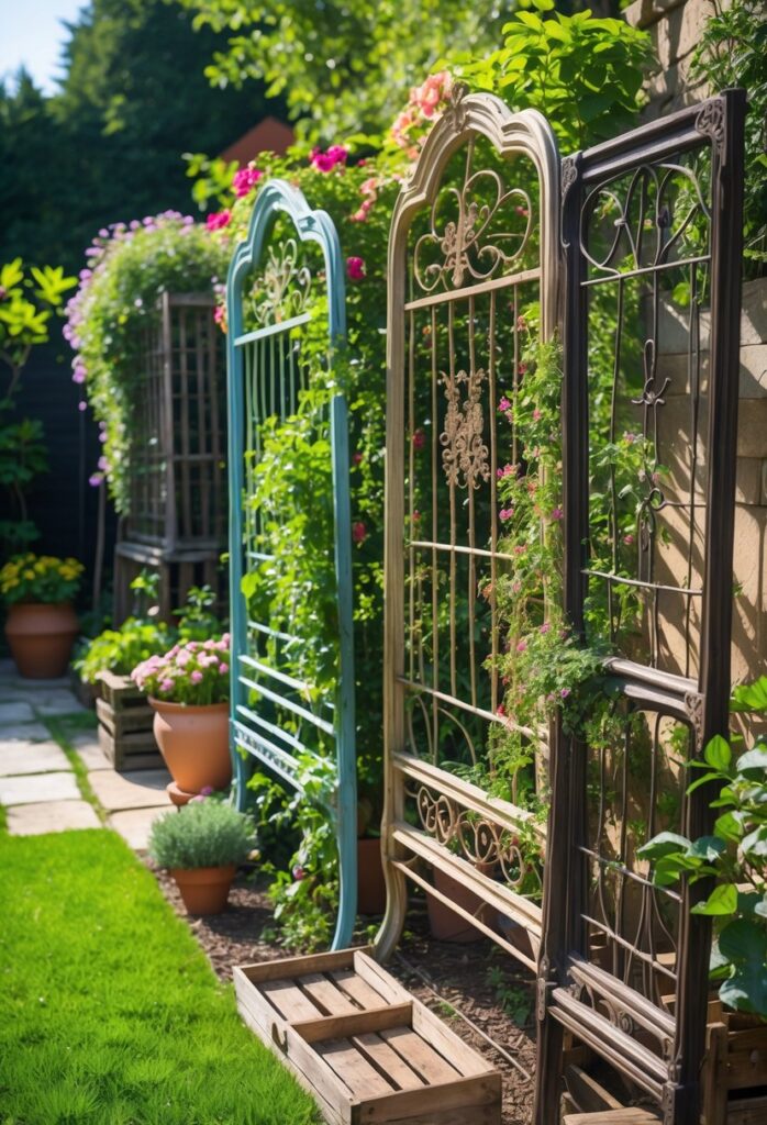 Reclaimed bed frames make sturdy and attractive garden trellises. Their metal or wooden designs provide natural supports for climbing plants like vines and peas. The open patterns in metal frames are especially good for plants to grip as they grow.