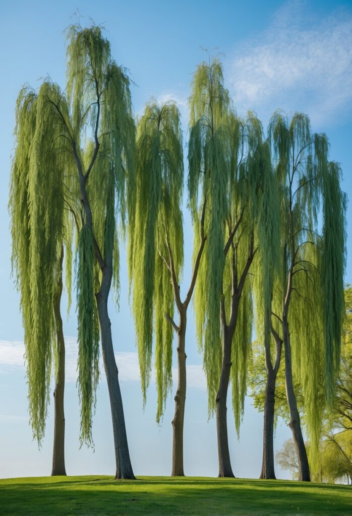 The graceful silhouette of weeping trees can make spaces feel peaceful or sophisticated. They stand out without overwhelming other plants. Their unique branches create a canopy shape that invites people to pause and notice.