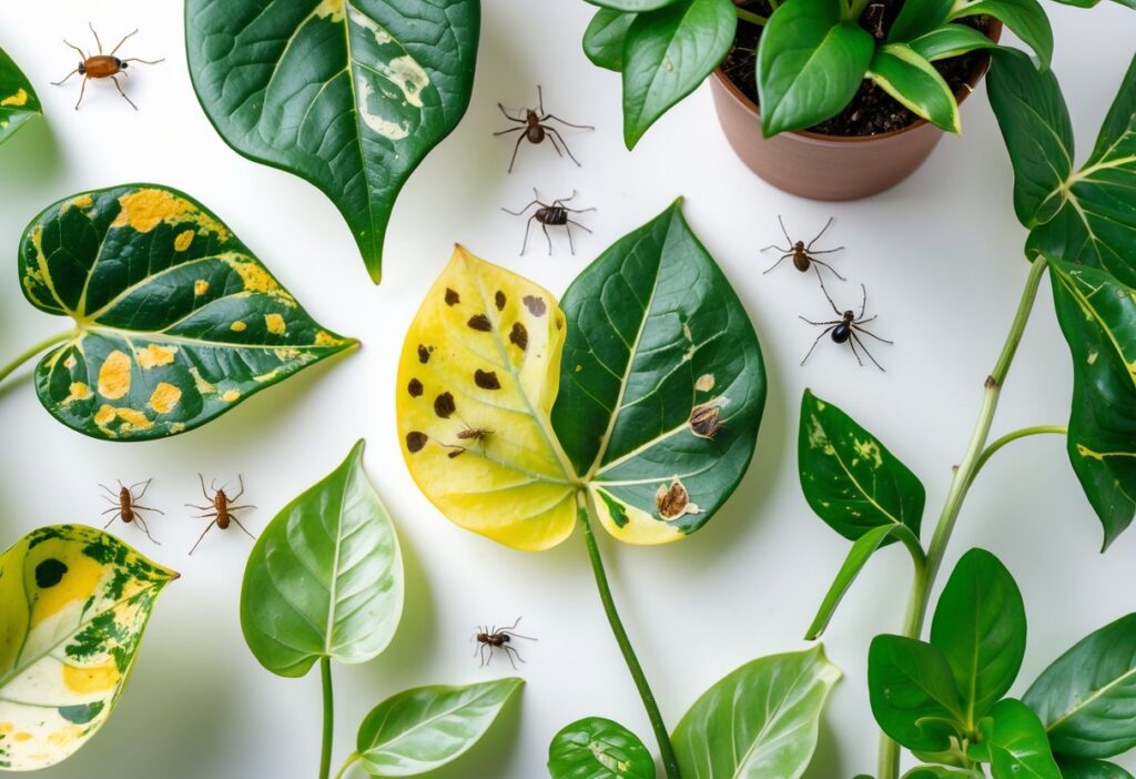 Pests such as spider mites or aphids can cause similar discoloration by feeding on the leaves. Brown or black patches can also appear when leaves burn from too much sun or are damaged by chemicals. Identifying the exact cause helps decide if treatment with fungicide, pest control, or changing environment is needed.