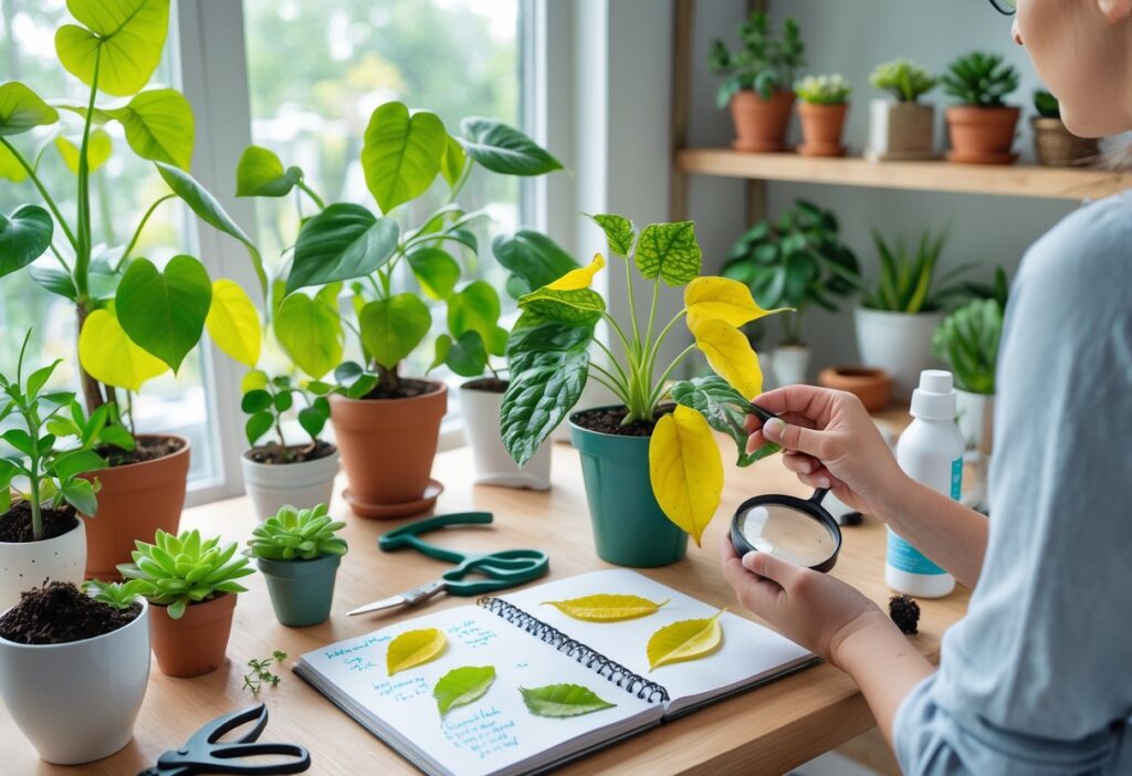 Plants show many signs when something is wrong. Changes in leaf color, spots, or wilting can point to specific problems like watering, pests, or nutrients.