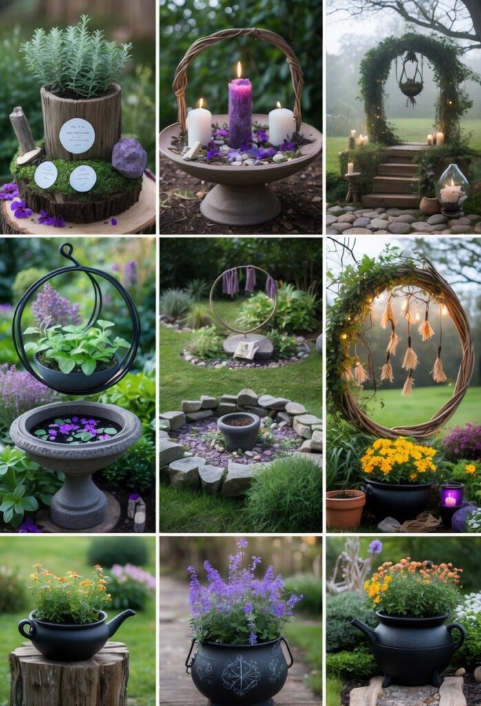Adding birdbaths or small water features can bring gentle movement and sound to a witchy garden. Water attracts birds, which adds life and natural energy to the space.