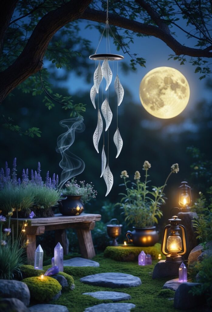 Choosing silver tones links to the moon’s color. It fits naturally in a moon garden, enhancing the theme. Placing wind chimes where they catch light and breeze is key.