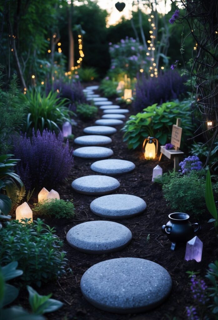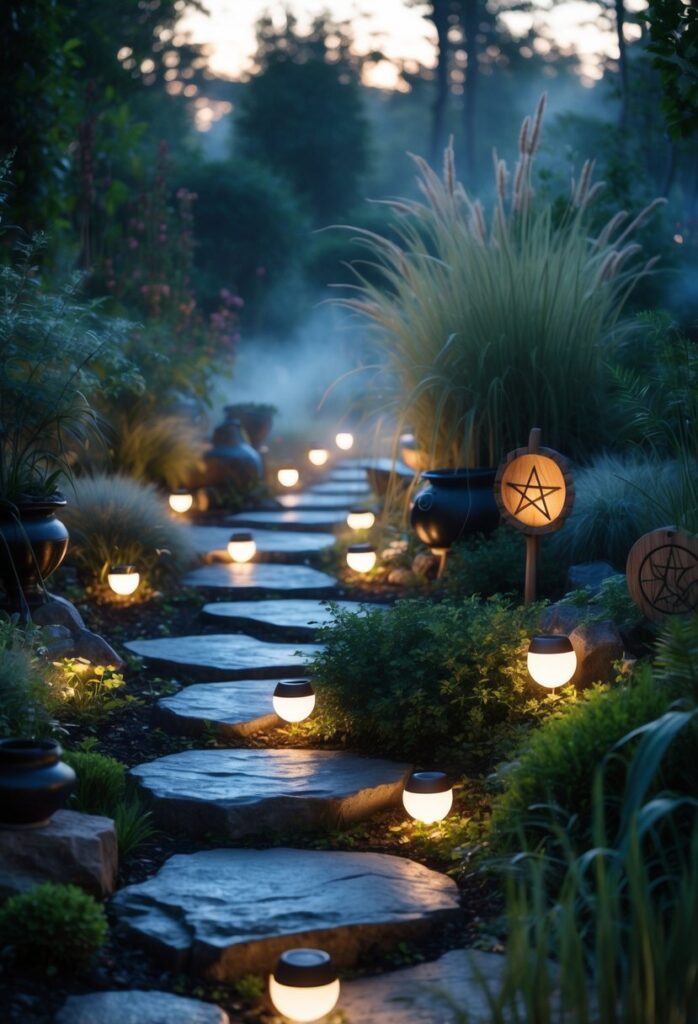 These stones can guide visitors through the space while enhancing the atmosphere. Arranging them in patterns like crescents or spirals can boost the garden’s mystical feel.