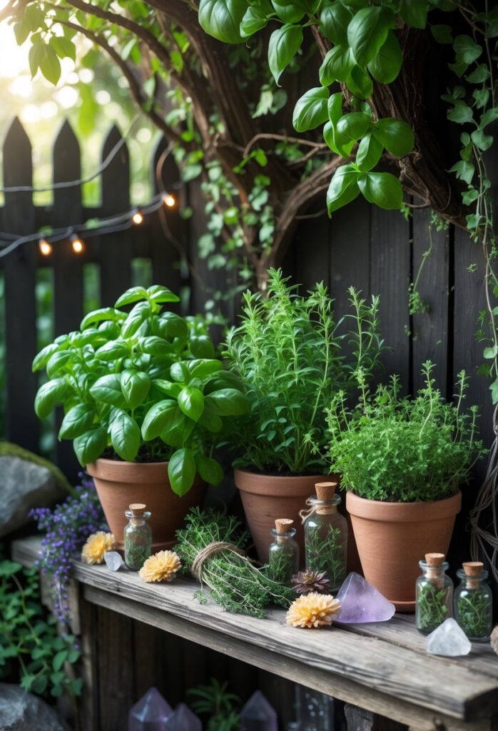 For added charm, they can include small labels or jars nearby to store dried leaves. This creates a useful and attractive potion herb corner.