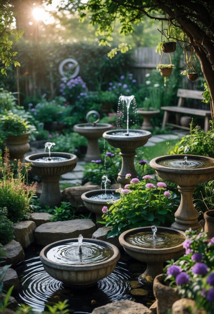 Even a simple birdbath can create a peaceful spot for reflection and connection with nature. Small fountains or bubbling water add a calming, mystical touch.